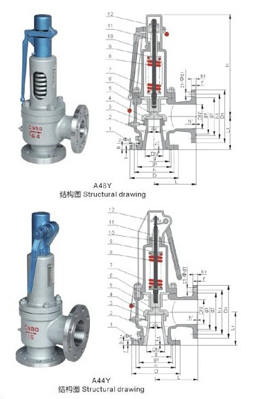 A44Y带扳手弹簧全启式安全阀适用于工作温度≤300℃的空气、石油等介质的设备或管路上,作为超压保护装置。