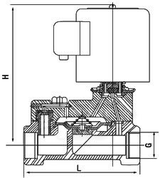 本阀通径15~100为膜片式为二次开阀的先导式电磁阀,通径125~300为三次开阀的先导式电磁阀,其结构主要由副阀和主阀组成。根据断电时所处开关状态的不同,可分为常闭电磁阀和常开电磁阀。常闭电磁阀,常位时,活动铁芯封住副阀口,阀腔内压力平衡,副阀、主阀口封闭。当线圈通电,产生电磁力:将活动铁芯吸上,副阀打开,主阀腔内的介质自导阀门外世,以致主阀阀杯上下产生压力差,膜片或阀杯被迅速托起主阀口开启,阀呈通路状态。