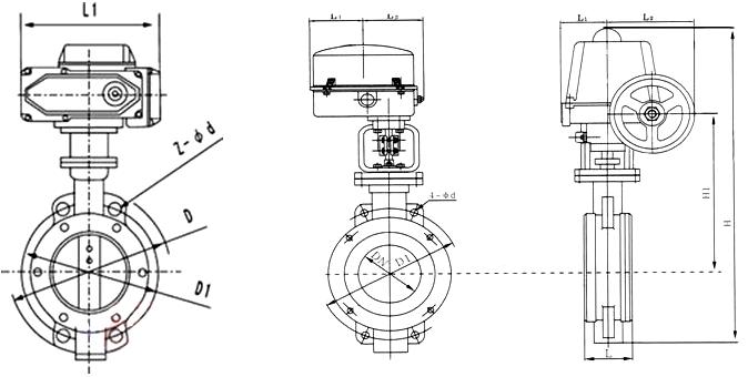 电动调节蝶阀 主要外形尺寸