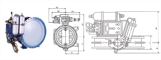 1、本阀的驱动系统为中同压两级驱动装置,该装置体积小而蝶阀启闭速度的调控范围大,初开启段为高压小流量控制,使蝶阀开启瞬间状态平缓,无剧烈波动,完全清理系统内的水锤隐患,然后将切入较快的转动角速度,液压缸将以设定的理想推力与速度将蝶板平稳打开。