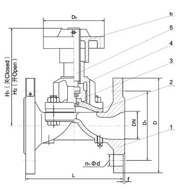 部件列表:1.阀体 2.隔膜 3.阀瓣 4.阀杆 5.阀盖 6、手轮
