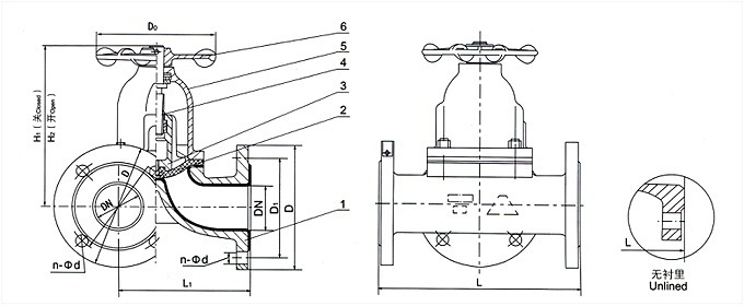 用途:本阀专用于控制非腐蚀性或一般腐蚀性介质,阀体内腔表面无衬里或覆有可供选择的各种橡胶,适用于不同工作温度和流体管路。