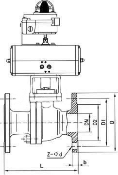 采用新型系列GT型气动执行器,有双作用式和单作用式(弹簧复位),齿轮齿条传动,安全可靠;大口径阀门采用系列AW型气动执行器拔叉式传动,结构合理,输出扭矩大,有双作用式和单作用式。