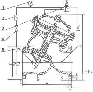 1、压力表2、过滤器3、控制导阀4、流量调节阀5、主阀