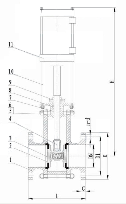 DN | PN(10kg) | L | D | D1 | C | H | n-d |