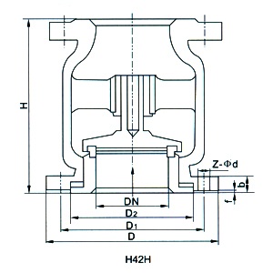 H42H、H42W立式止回阀正常处于关闭状态,由于管线中进口端介质的压力作用,而克服弹簧阻力使阀门开启。当进口端介质压力低于出口端时,弹簧将阀芯推向阀座而使阀门关闭,阻止介质逆流,故起止回作用。