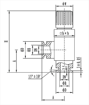 型号 | 通径(DN) | ΦD | ΦB | ΦW | H | A | bxb |