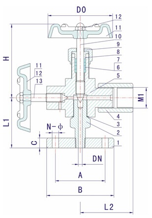 公称通径 DN | M1 | B | L1 | L2 | H | D0 |